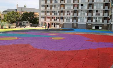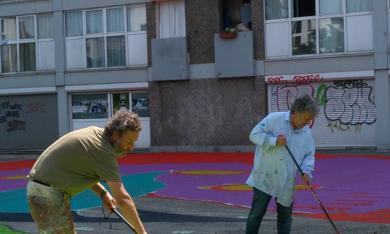 Après, suite à des ateliers menés au cours de cette année, ces artistes ont également réalisé un dessin géant sur la dalle des logements sociaux Brigittines. Cet événement s’inscrit dans un projet mené avec les habitants du quartier, dans le cadre du programme 101e% de la SLRB en collaboration avec le Logement Bruxellois et le Contrat de Quartier Jonction.