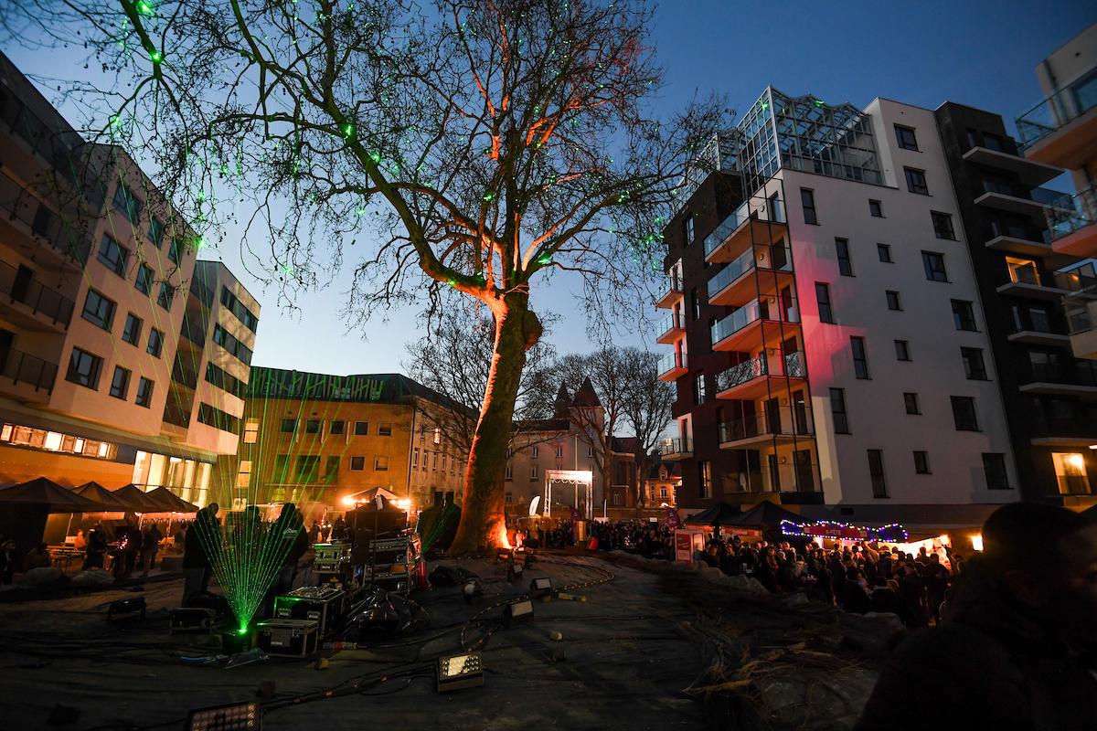 Au menu des festivités gratuites de ce mercredi : activités pour les enfants (grimage, ateliers de hip-hop et de cirque) suivi d’un spectacle qui mobilisera les associations locales et mettra en lumière la nouvelle architecture des lieux. La soirée sera animée par DJ Pituto jusque 21 heures. L’inauguration officielle du projet interviendra au printemps, lorsque l’achèvement du chantier et la réception des logements seront finalisés.