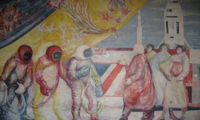 Le groupement d’artistes Cuesmes 68 a réalisé en 1977 des peintures murales dans les trois halls de l’immeuble des Goujons, à Anderlecht. L’œuvre est actuellement en phase de rénovation, afin de remettre en lumière les enjeux sociaux et artistiques de l’époque et de faire le lien avec l’art contemporain.