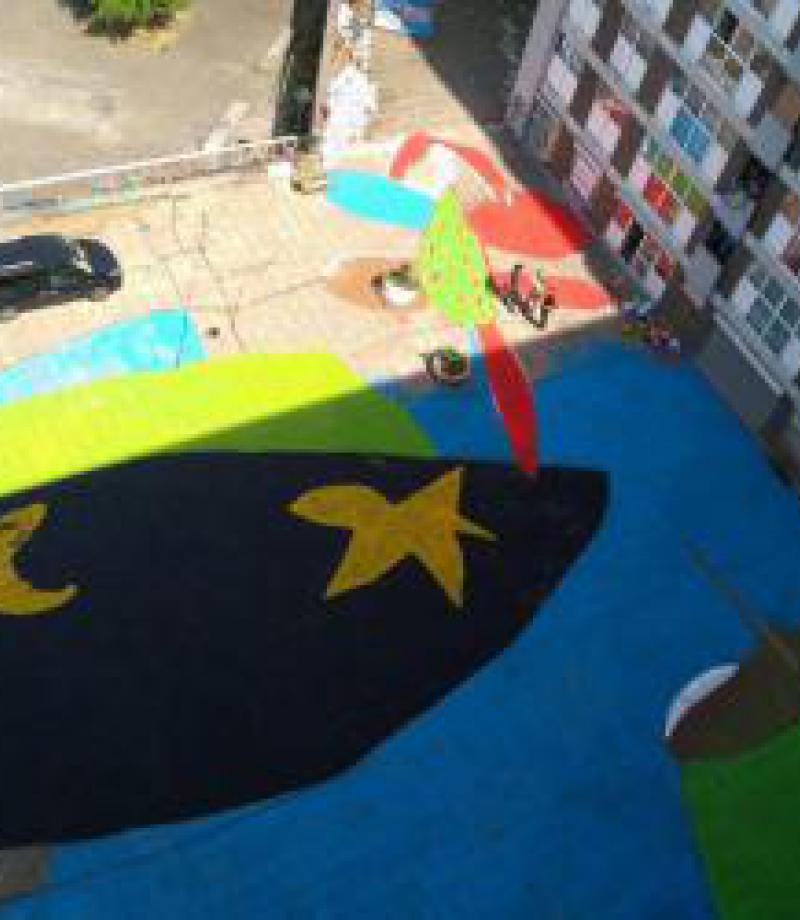Na de workshops eerder dit jaar, hebben de kunstenaars nu samen een reusachtige tekening gemaakt op het plein naast de sociale woningen in de Brigittinewijk. Dit evenement maakt deel uit van een project dat samen met de bewoners op poten werd gezet, in het kader van het programma 101e % van de BGHM, in samenwerking met de Brusselse Woning en Wijkcontract Jonction.