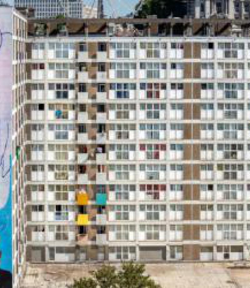 Ironisch genoeg is de gevel, met zijn kunstwerk, niet zichtbaar voor de sociale huurders die in het gebouw wonen. Daarom heeft de kunstenaar, samen met de kinderen uit de wijk, een grote tekening gemaakt op het plein onderaan het gebouw en zichtbaar voor alle bewoners vanuit hun raam.