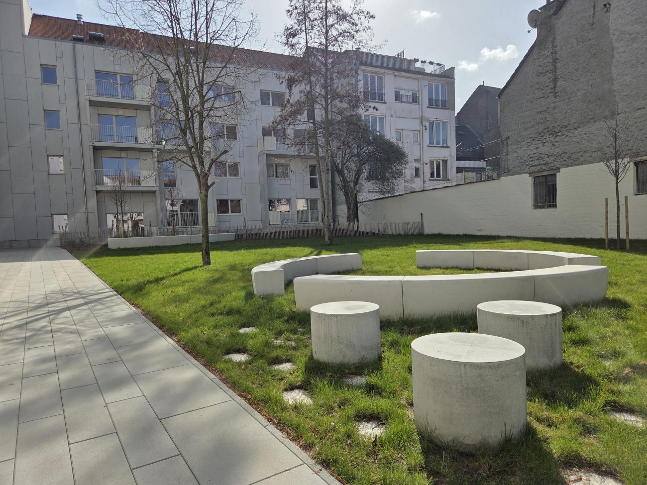De woningen, die voordien geen toegang hadden tot het binnengebied, geven vandaag uit op een ruime tuin en beschikken over terrassen of balkons, wat de levenskwaliteit van de bewoners aanzienlijk verbetert.